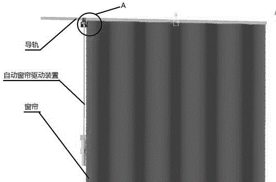 本自动窗帘驱动装置以悬挂的方式安装在窗帘导轨上,并与窗帘悬垂的边缘连接,与窗帘一起运动。自动窗帘驱动装置包含滚轮机构、导杆、动力单元三部分。驱动装置的动力单元由电机、控制模块、充电电池组成,电机有减速机构,是具有正反转功能的直流电机,转速为200r/min,电压12V或24V的安全电压。控制模块是电机的控制开关,可实现电机的点动和正反转控制,并可通过蓝牙(bluetooth)或无线网(wifi)与智能手机连接,无需配单独的遥控器。电池为12V或24v的充电电池,无需外接电源,电池可取下定期充电。