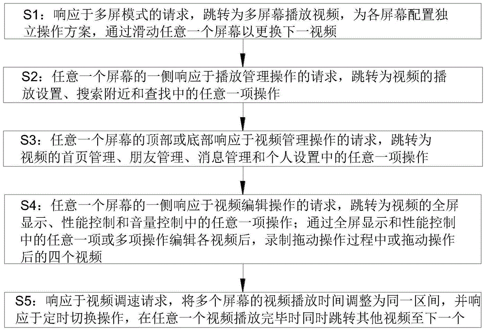 本发明涉及视频播放领域,具体而言,涉及一种多屏显示可操控视频播放方法、系统、设备及介质。