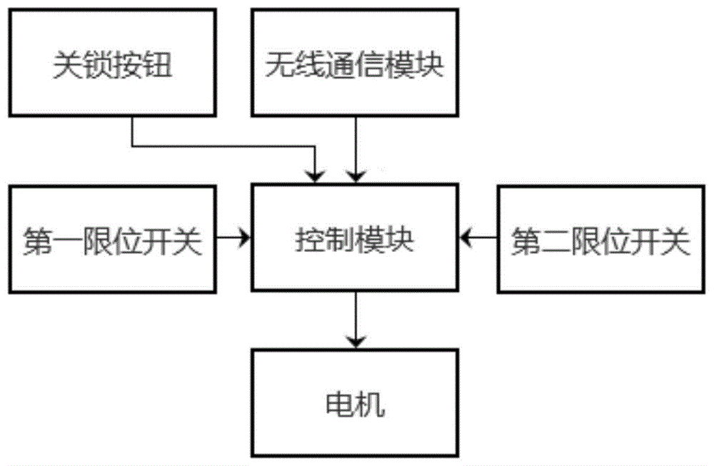 在一个优选例中,所述驱动件还包括控制模块,被配置为根据外部的控制信号驱动所述电机转动,所述齿轮连接于所述电机的转轴上,所述电机驱动所述齿轮转动,从而驱动所述锁舌运动到所述第一位置或所述第二位置。
