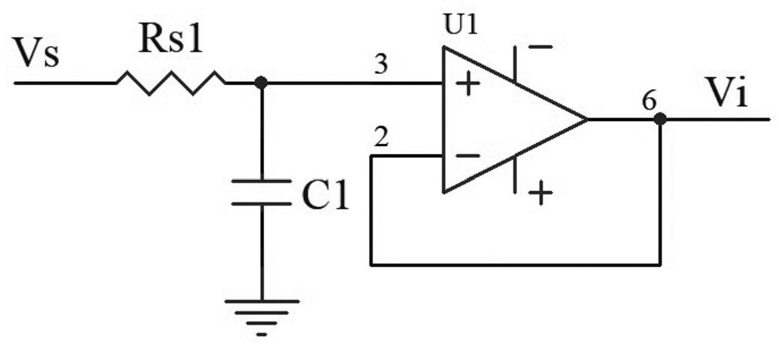 优选地,所述输入分压衰减器的输出之后插入一个运放,并跟随输出到输入节点p1;此增益衰减并不影响二阶滤波节的频率特性。由于电路总增益是衰减器增益与电路自然增益之综合,因此改变输入衰减就能够方便改变电路增益;