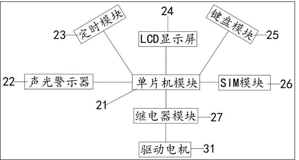 进一步的,所述定时模块和所述继电器模块分别与所述单片机模块电性连接,所述驱动电机与所述继电器模块电性连接。