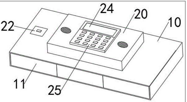 1、本实用新型中,设置有三个抽屉,分别对应放置早、中、晚的药物,并设置有定时模块、单片机模块和移动机构,通过定时模块、单片机模块和移动机构的相互配合可在预定的时间到达后分别打开对应的抽屉,从而供老人服用,这样便能很好的解决老年人吃错、拿错药物的现象。