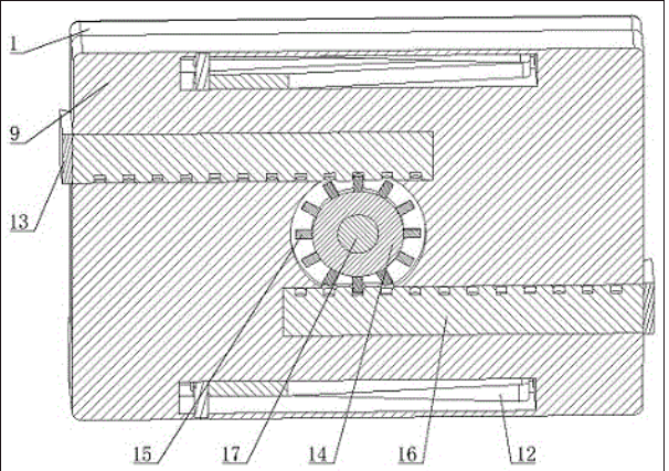 其解决的技术方案是,本实用新型包括主体,主体内设有多个前后轴向的副带轮,主体内设有前后轴向且可转动的主带轮,主带轮位于副带轮右方,多个副带轮和主带轮之间经传动带连接,副带轮内设有前后方向的固定键,副带轮内同轴滑动连接有按摩杆,按摩杆上开设有前后方向的键槽,固定键插入其对应侧的键槽内且可在其对应侧的键槽内滑动,按摩杆后端设有按摩球,按摩杆上开设有螺旋形的滑动槽,主体内设有多个与滑动槽一一对应且可插入其对应侧滑动槽内的插杆,主体上开设有前后贯通的矩形槽,主体前方设有可插入矩形槽内的盖板,主体左右两端分别设有固定带。
