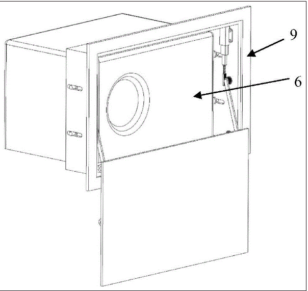 在一些实施例中,如图2、图5和图13所示,所述隐藏式投影仪盒子还包括固设于所述盒体1的开口处的装饰外壳9,所述装饰外壳9用于遮挡所述盒体1与所述墙体5之间的缝隙。所述装饰外壳9与所述盒体1内侧壁固定连接,所述联动结构4和所述驱动结构3与所述装饰外壳9连接实现与所述壳体的连接。所述装饰外壳9的设置起到装饰所述隐藏式投影仪6盒子的作用,避免墙体5裸露影响所述隐藏式投影仪盒子的美观。