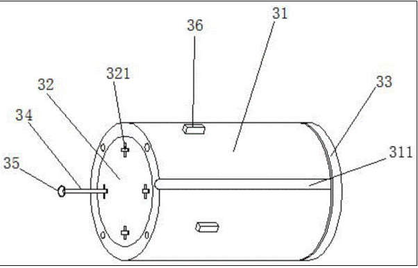 具体的,网兜4包括连接为一体的网兜主体41和龙骨架42,网兜主体41的底部固定在底盖33上,龙骨架42固定在容器主体31的内壁上。